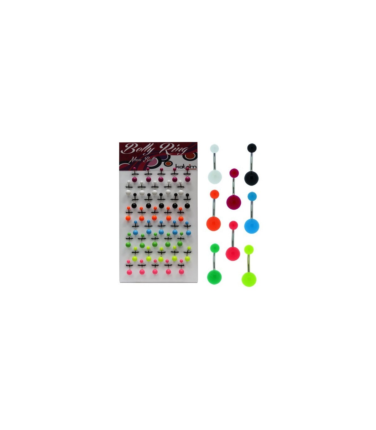 Expositor de piercings de Ombligo con bola de tonos y colores diferentes.