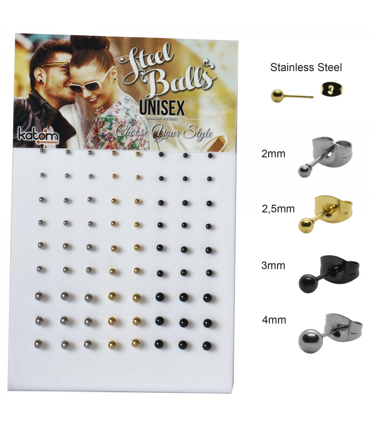 Dos tamaños: 3mm y 4mm diametroTres colores: negro, acero y dorado.(Número de piezas: 64 unidades)