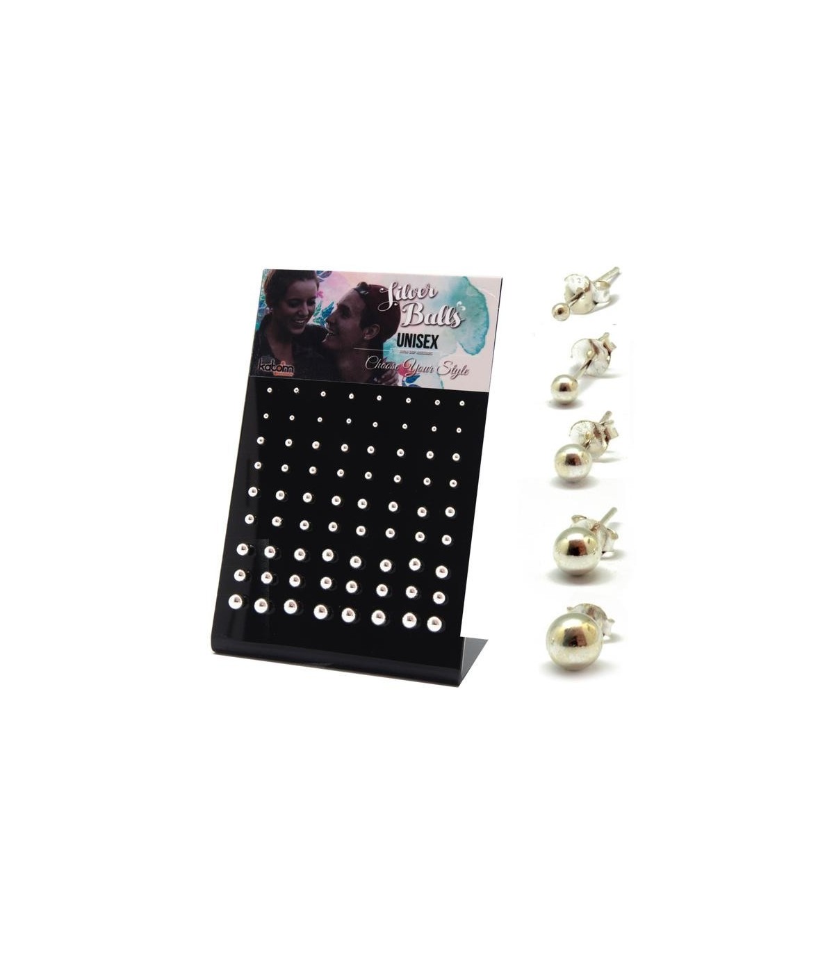 Expositor pendientes de plata bolita varios tamaños, 2, 3, 4, 5 y 6 mm