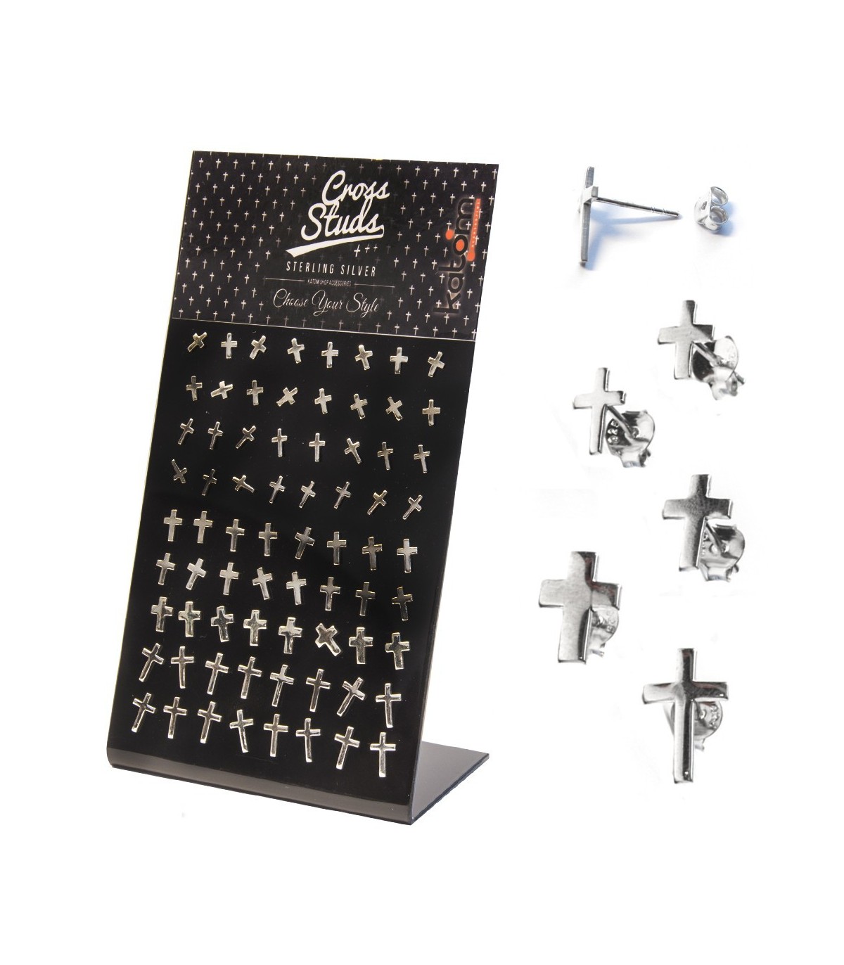 Expositor pendientes de plata de ley .Diseño de cruz con cristales swarovski aplicados.