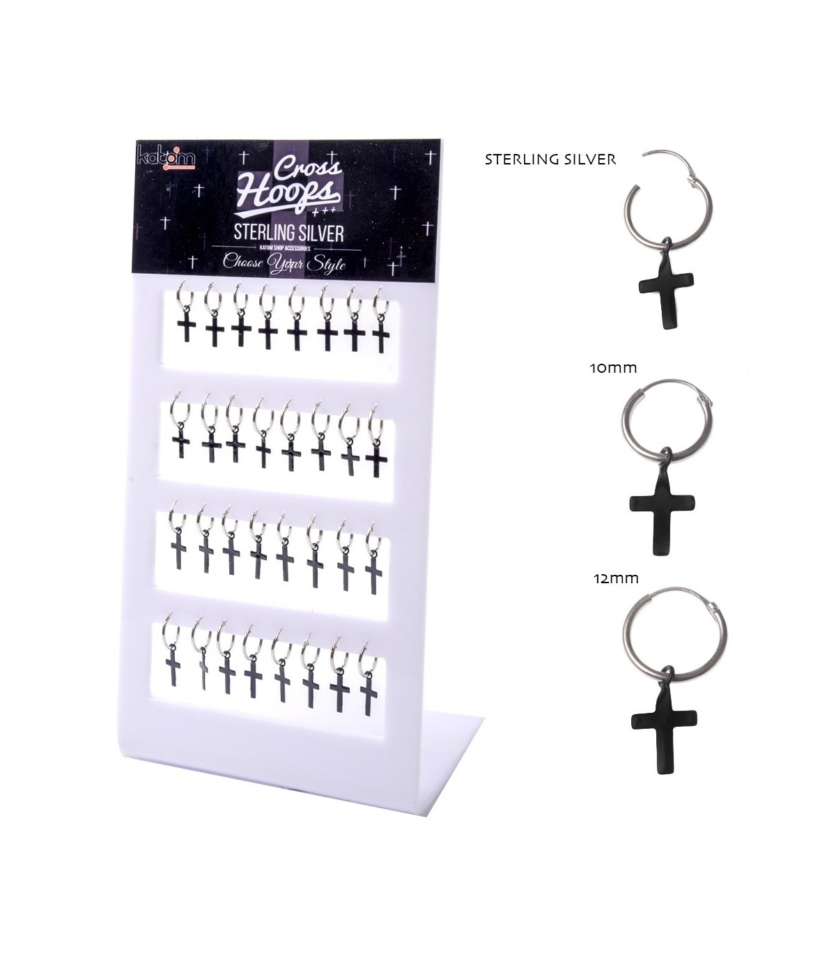 Expositor de aros de 1,2 mm de ancho en acero con colgante cruz.