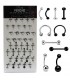 Espositor de piercing básico de acero en colores acero y negro, para ceja, labio, ombligo y lengua, también para Septum, Tragus y Helix.