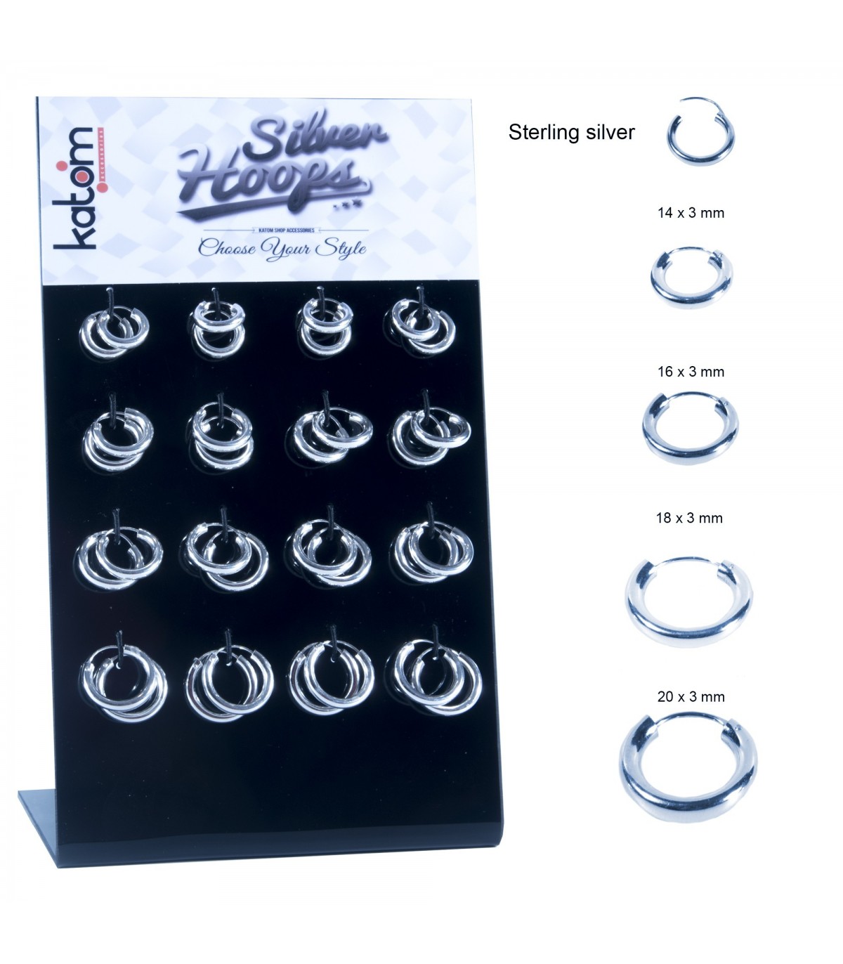 Expositor de aros de plata grueso, estilo Creole. En 4 tamaños diferentes: 14mm, 16mm, 18mm, 20mm. Unisex.