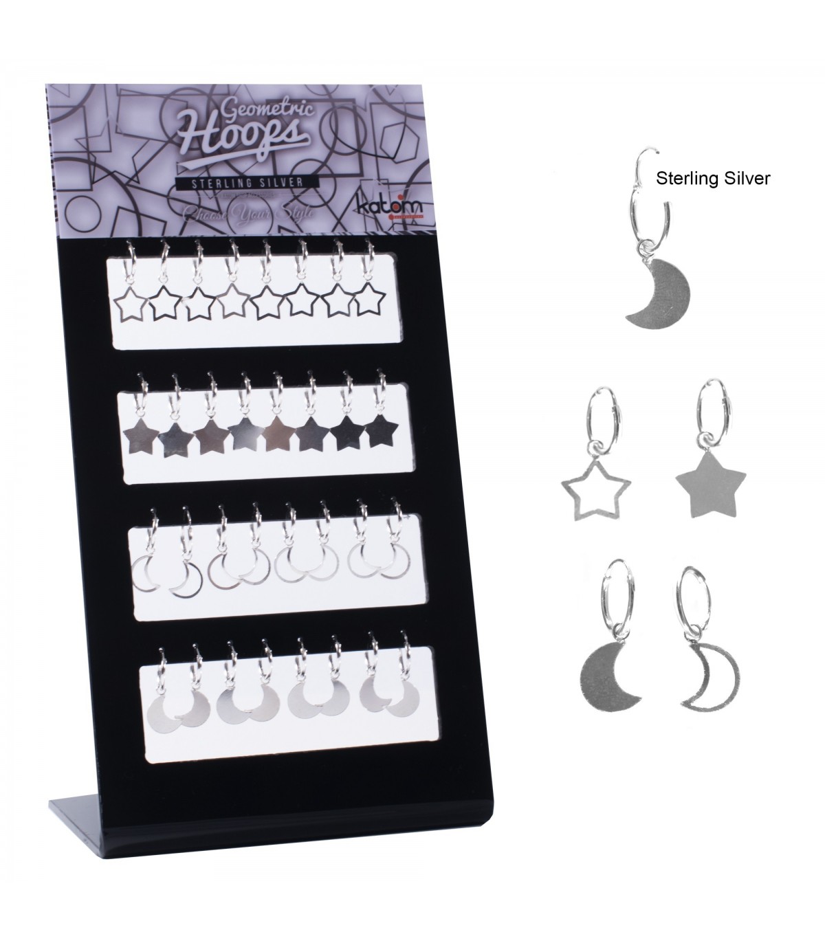 Expositor de 36 parejas de 10mm ,12mm 14mm de plata (el de 10mm se puede usar para nariz)grosor de 1,20mm. Para chicos y las chicas.