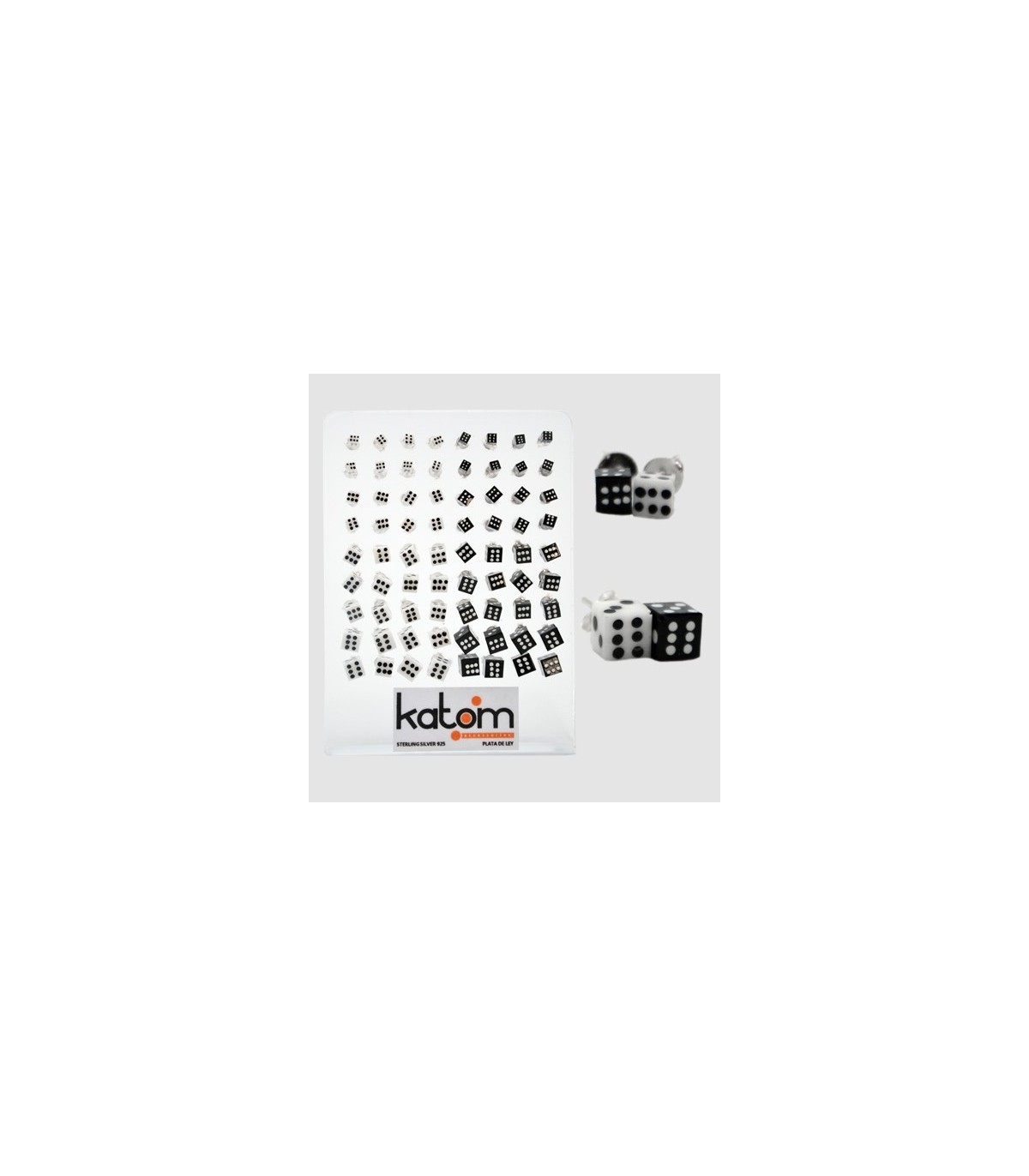 Expositor de 72 unidades de pendientes plata dados en blanco y negro. Producto para hombre y mujer.