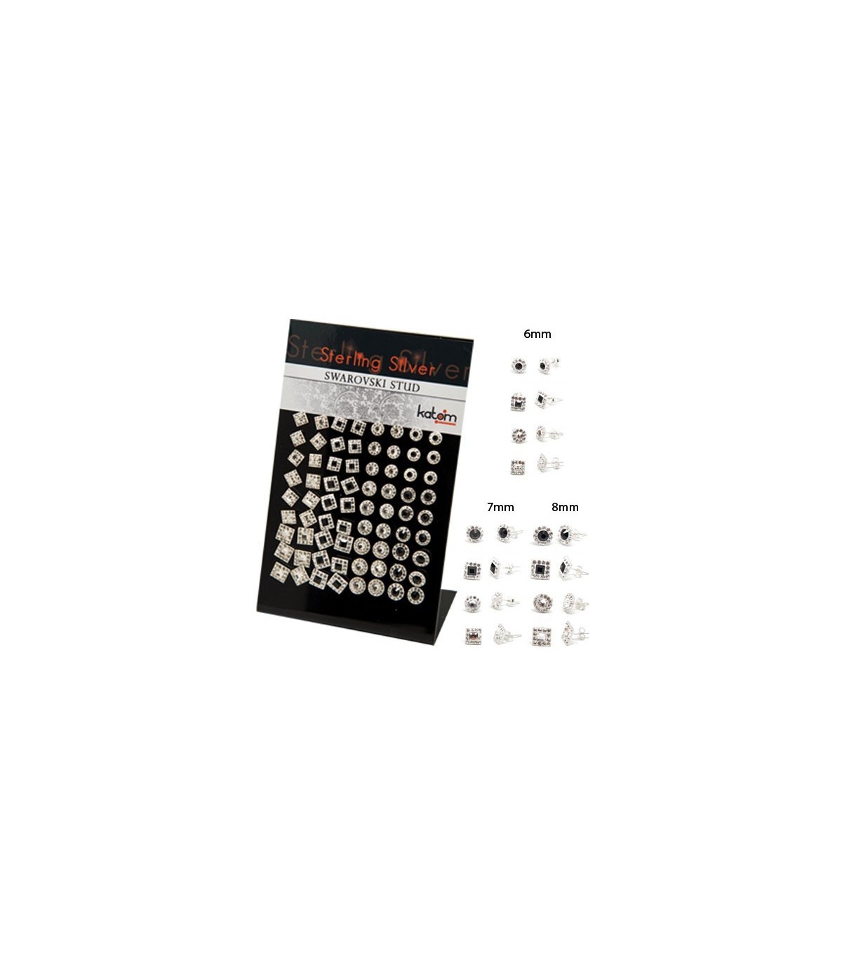 Expositor de pendientes de cristal engarzados en plata 925. En una amplia gama de colores. Adecuado para todas las edades y gustos.