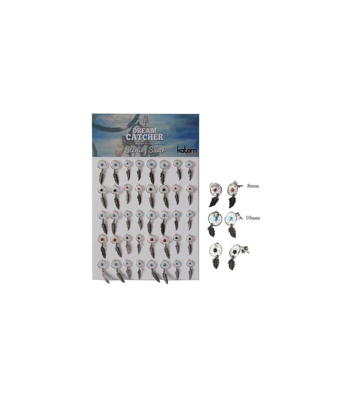 Expositor de pendientes de plata con centro esmaltado y colgante de pluma