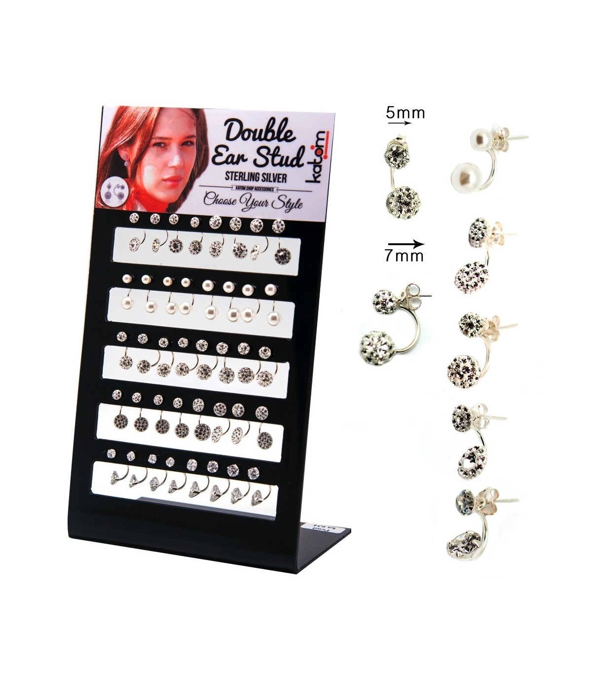 Expositor de pendientes en forma de Bolas de plata y Swarovski, 4, 5, 6, 8 mm. Muy popular para mujer y hombre.