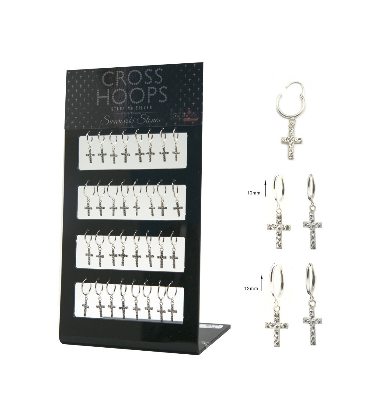 Aros de plata del tamaño 10 y 12mm con colgante en forma de cruz con cristasles Swarovski