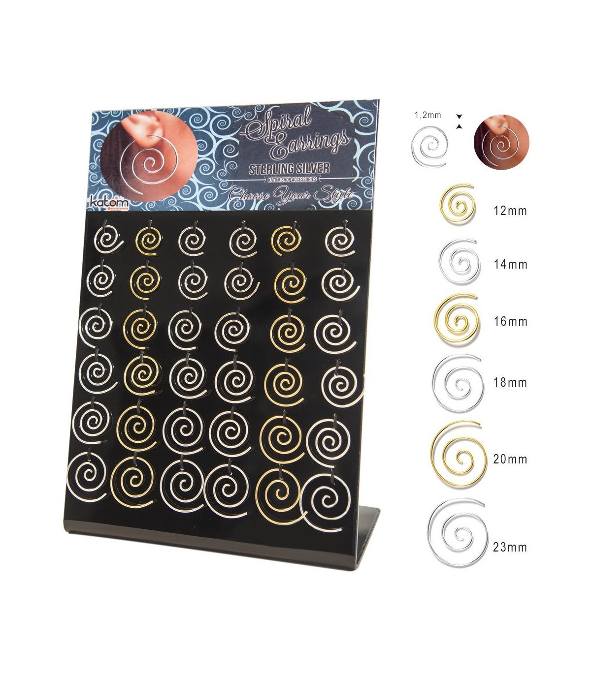 Expositor de diferentes medidas y diametros en forma espirales .todo 1,20mm de grosor y en plata de ley y bañado de oro