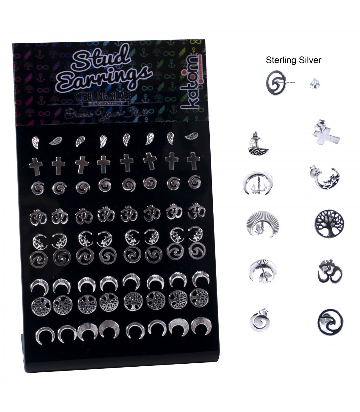 Expositor de pendientes de plata con 10 motivos diferentes.
