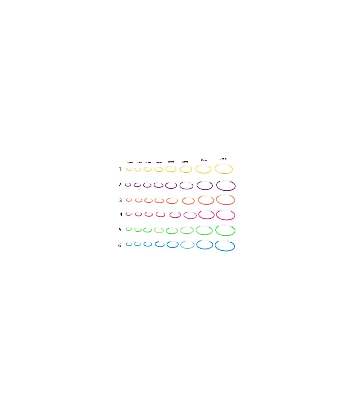 Aros de 6 colores distintos de plata .2 pares de cada color y tamaño.