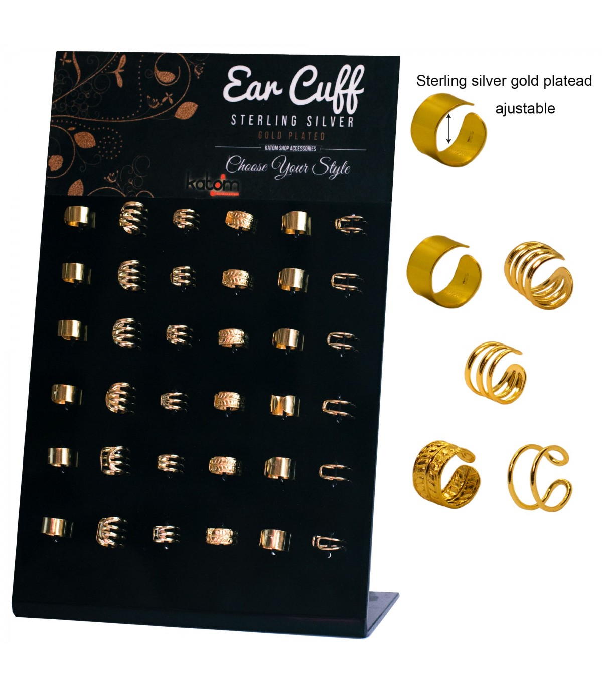 Expositor de pendientes trepadores Ear Pin de plata de ley bañados en oro de 18 quilates con diseños especiales y actuales, alguno de ellos con piedras Swarovski.