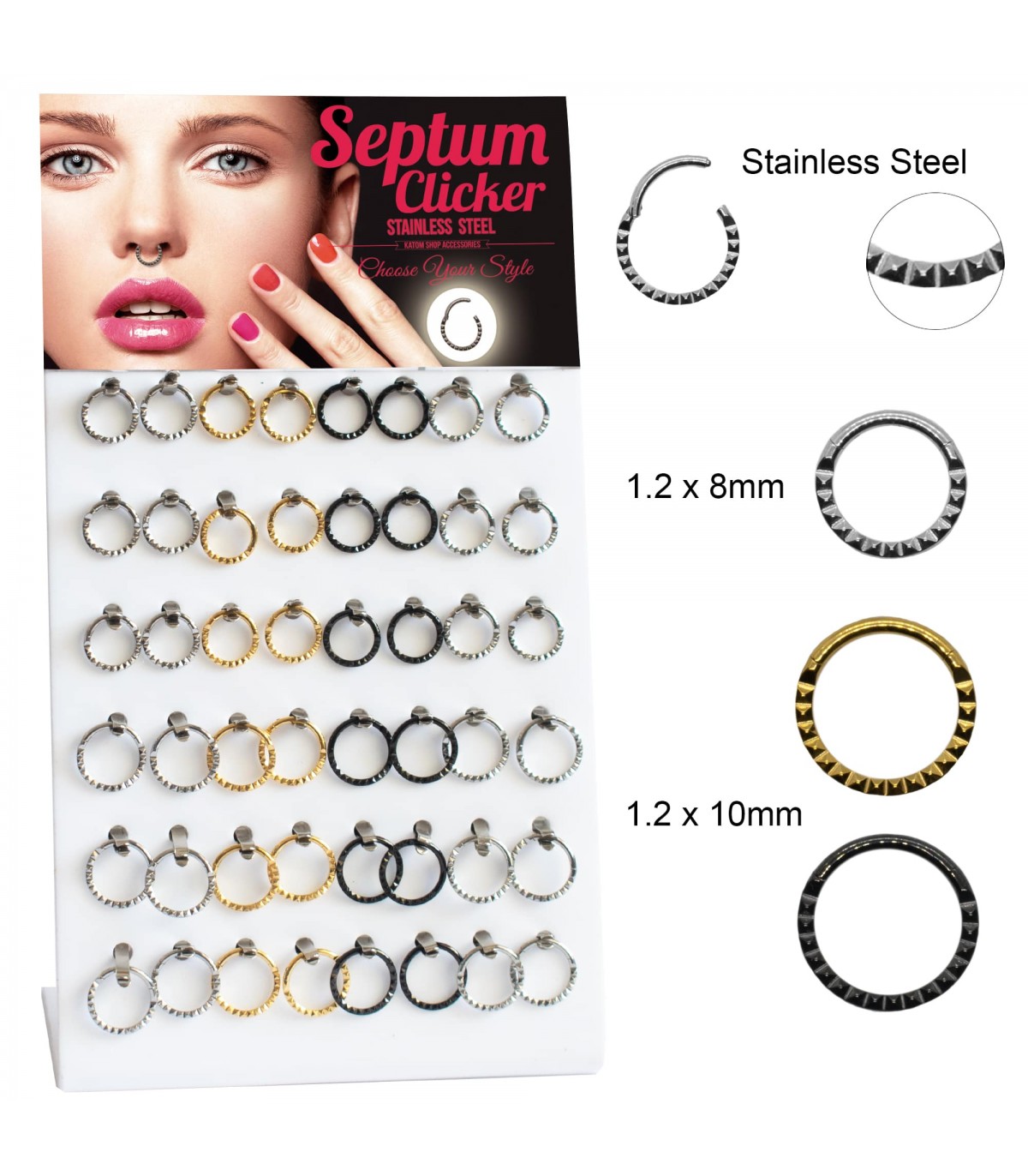 Expositor de septum clicker en 6,8 mm 6 modelos diferentes. En color acero o negro.