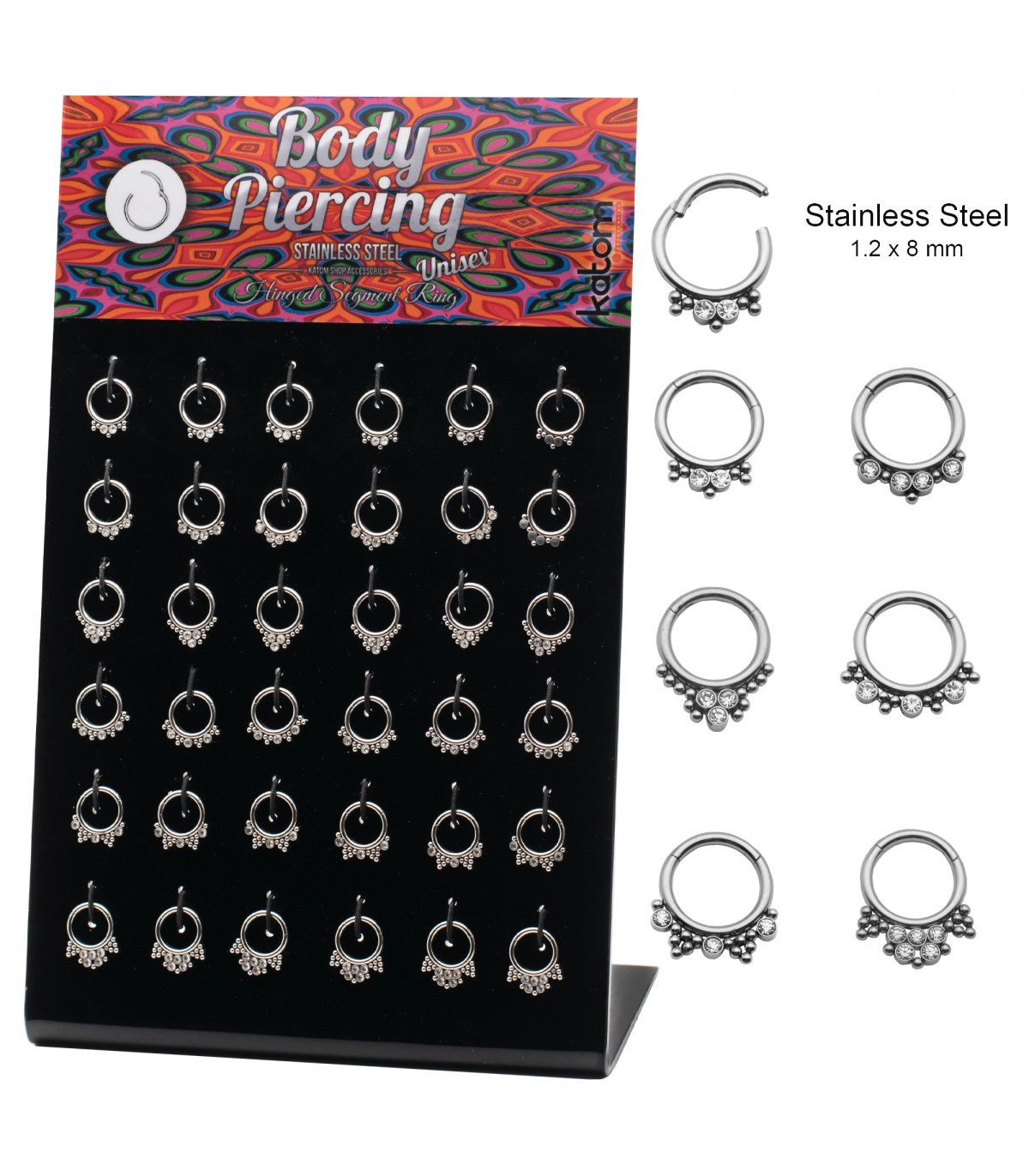 Expositor de Septum igual que daith y helix multijoya con cierre clicker bisagra, barra de 1,2 mm y diámetro de 8 mm en seis modelos: