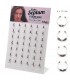 Expositor de piercing de acero, que al tener la barra de 1,2 mm puede usarse como Septum, Helix, Tragus y pendiente con cierre de bisagra clicable ( hinged segment )