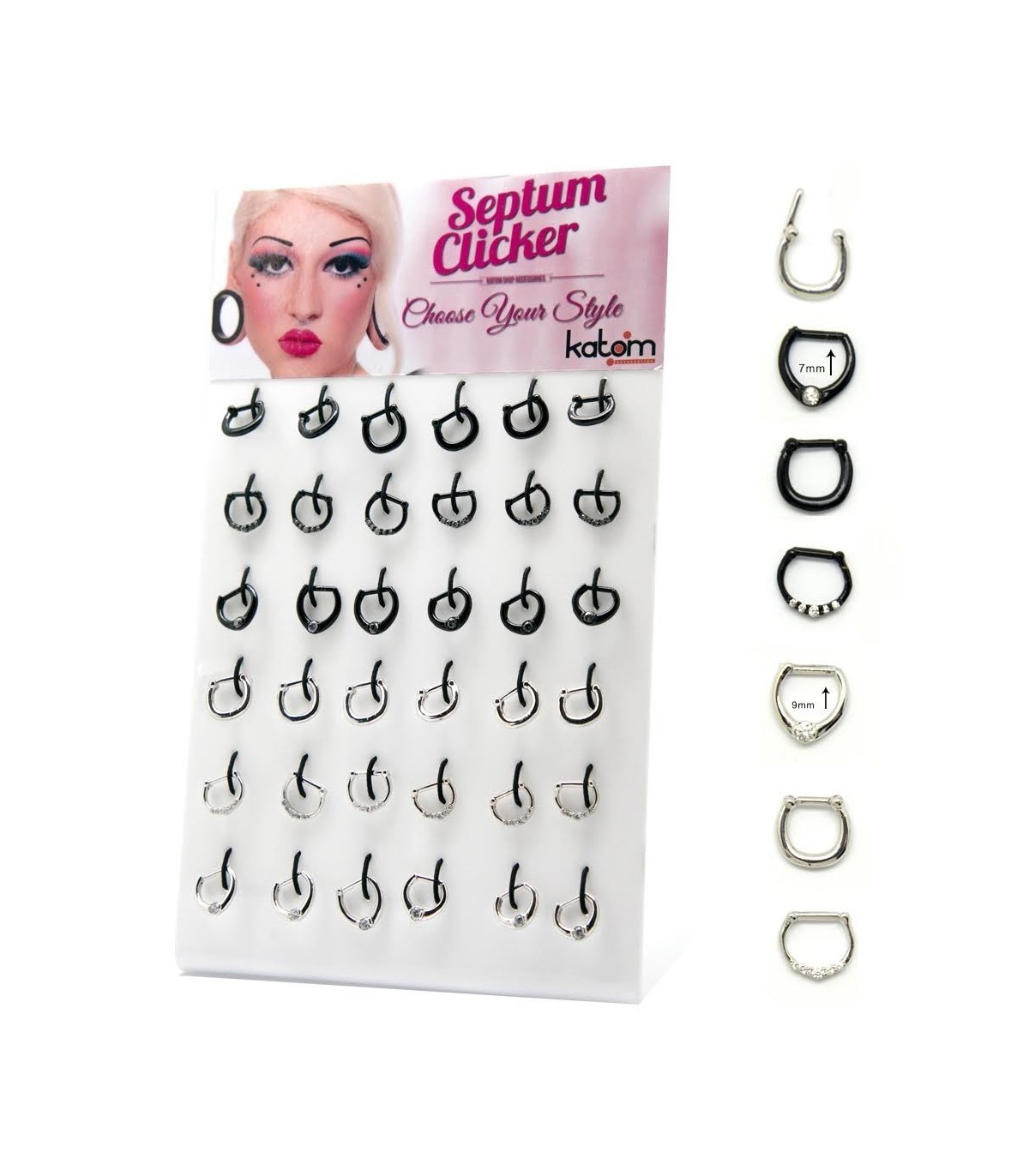 Expositor de septum clicker en 6,8 mm 6 modelos diferentes. En color acero o negro.