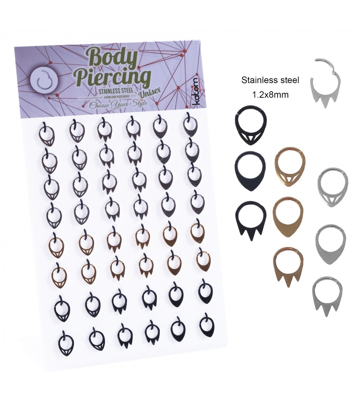 Expositor de Septum igual que daith y helix multijoya con cierre clicker bisagra, barra de 1,2 mm y diámetro de 8 mm en seis modelos: