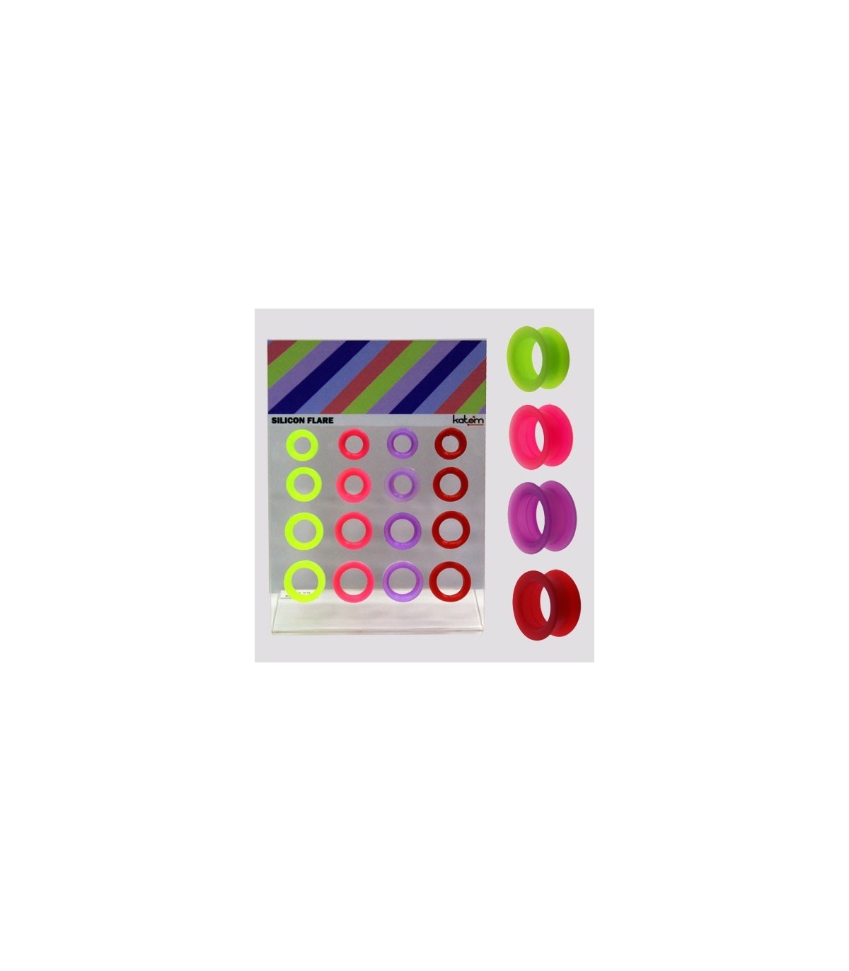 Expositor de 4 colores con sus parejas, dilataciones de silicona. 14, 16, 18, 20mm.