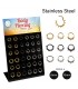 Expositor de aros de acero, con barra de 1,2 mm y diámetro de 8 mm, en tres colores (acero, negro y dorado) que puede usarse para el daith,Tragus, Helix, para la ceja, para el labio, para la nariz y como pendiente...