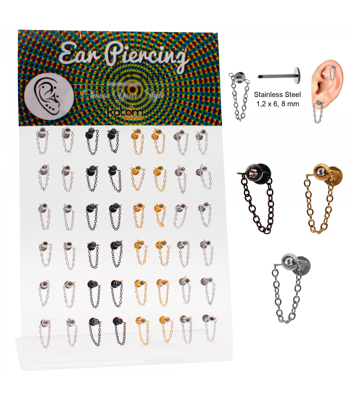 Expositor de piercing para Helix/Tragus de acero dorado, varios motivos con cristal