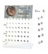 Expositor de Helix, Tragus o pendientes de acero con barra de 1,2 mm, 6 modelos diferentes con circonitas blancas.