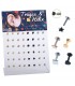 Expositor de doble pendiente de acero. Bola en un lado y varios motivos en el otro para poner en agujeros de pendiente y helix; en dos colores: acero y dorado.