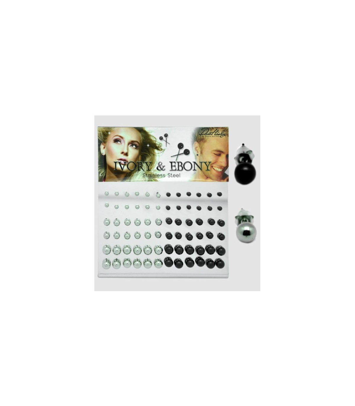 Boucles d'oreilles en acier chirurgical avec des symboles différents. En deux couleurs: noir ou en acier.72 unités par exposant.