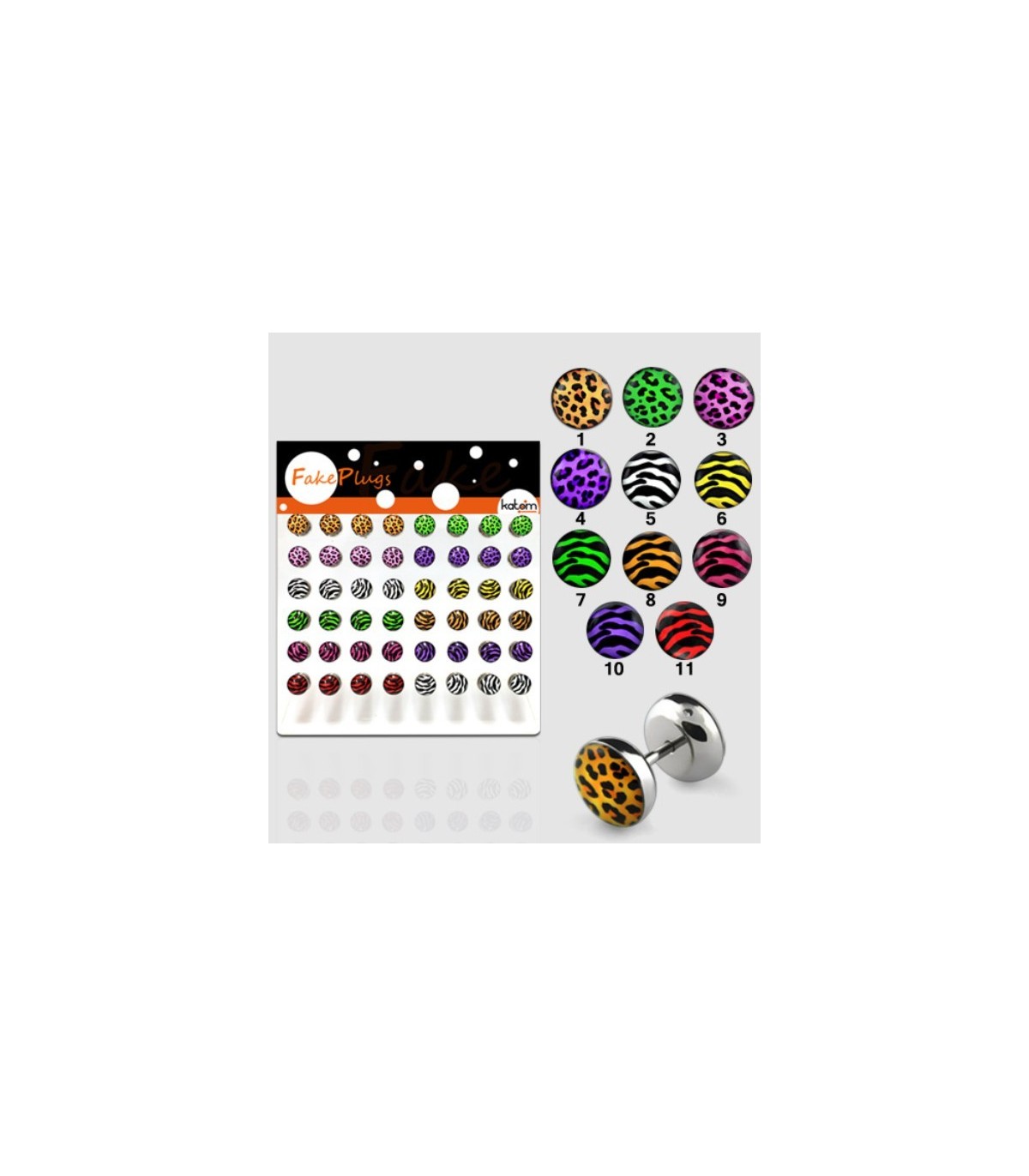 Exposant Fake Plugs en acier chirurgical avec différents hologrammes géométriques. N Couleur gris. 6 modèles. Tailles: 6mm, 8mm, 10mm.
