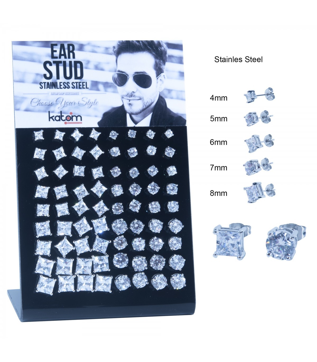 Présentoir de boucles d'oreille CZ en acier avec zircone blanche