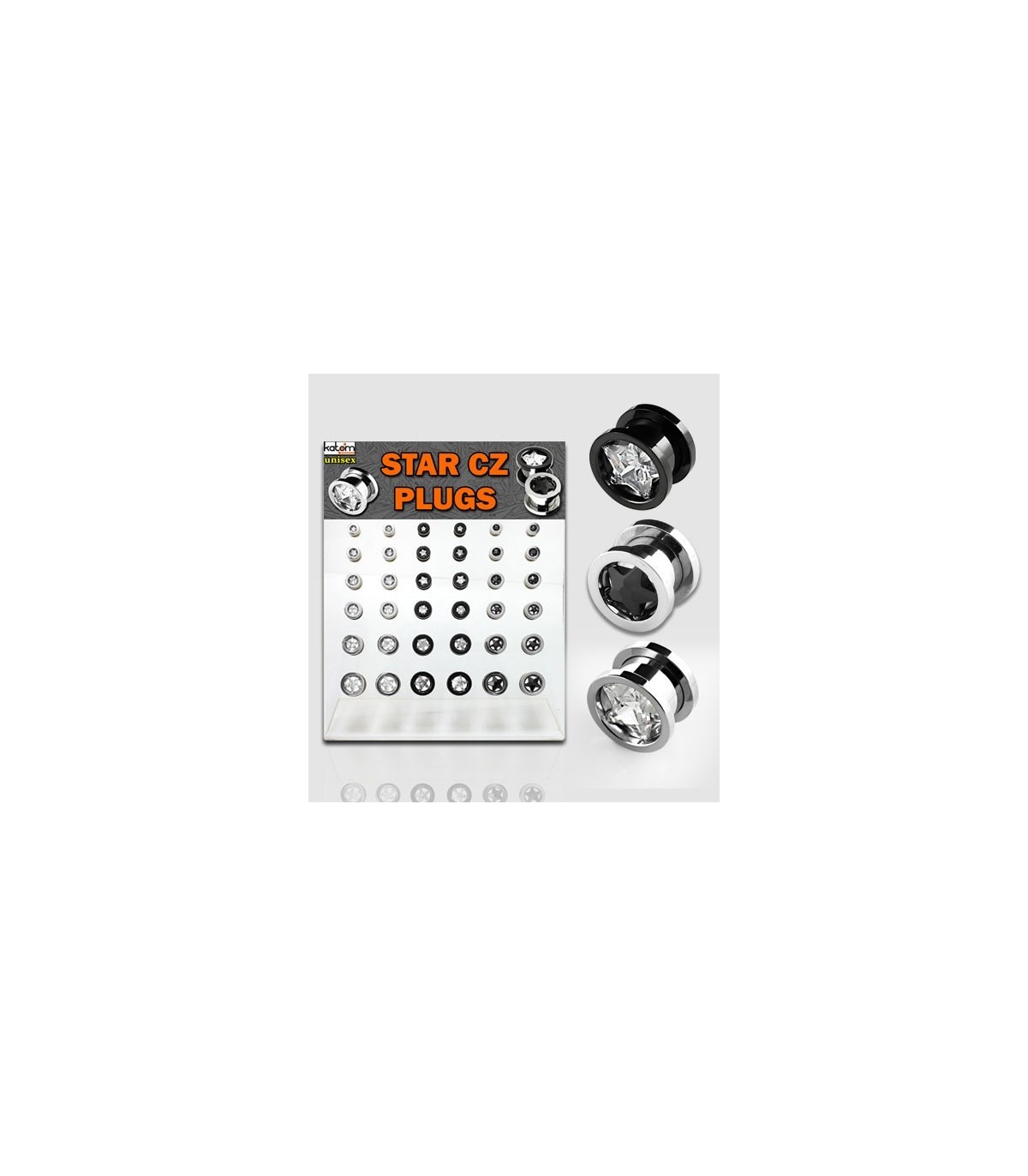 Exposant de dilatations de l'acier chirurgical. Dans deux modèles populaires: filetage intérieur et Flesh Tunnel.