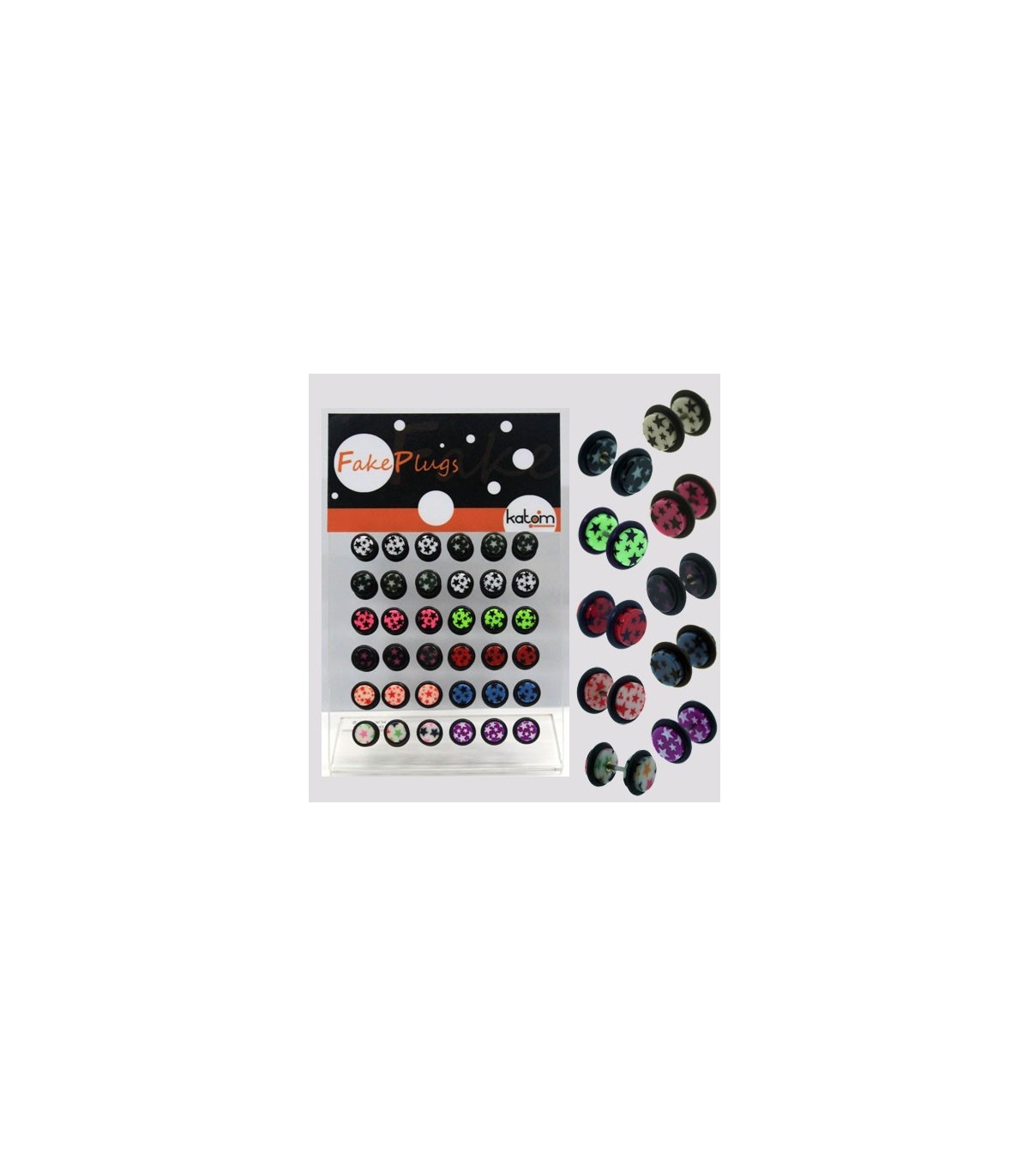 Exposant de 36 unités de fausses élargissements de 8 mm. 6 modèles avec des couleurs différentes. Retourne les gommes à effacer sur les 2 côtés.