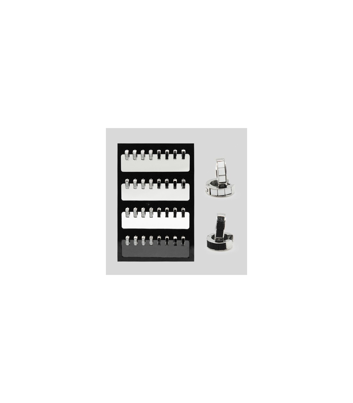 Exposant boucles d'oreilles en acier chirurgical et émaillées noir ou blanc.