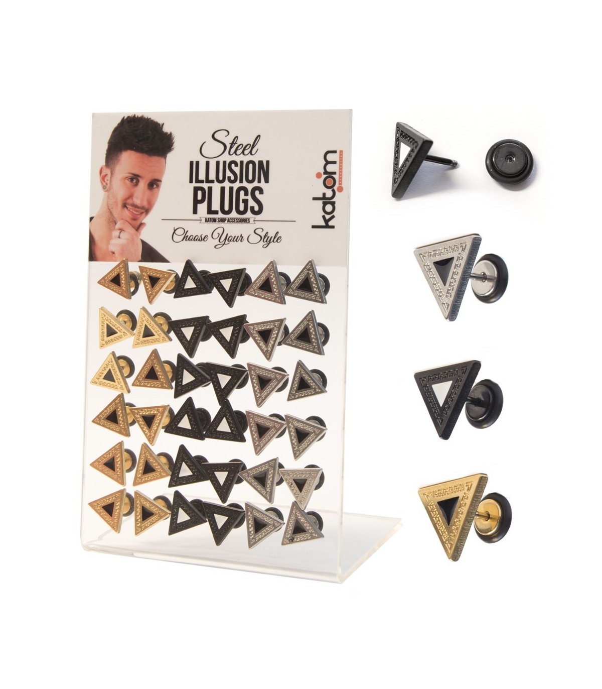 Présentoir de Faux Piercing en acier 3 couleurs, 2 tailles Triangles