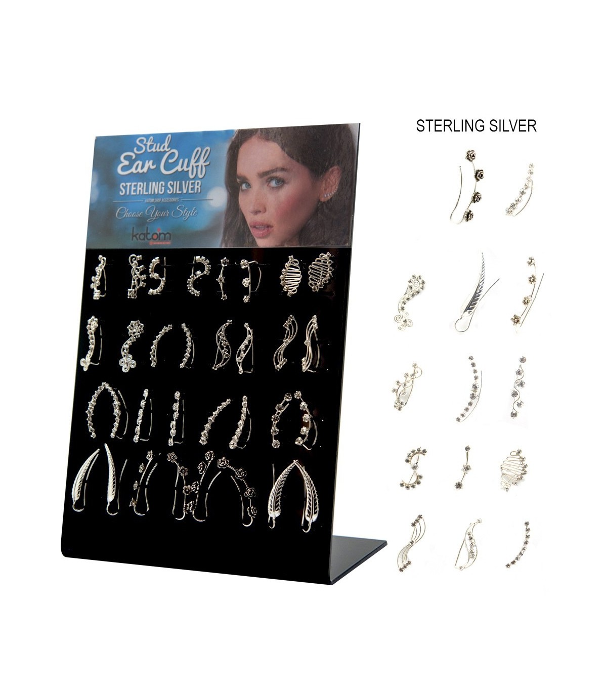 Exposant anneaux oreille argent 925/1000. flexibles. Avec des conceptions ethniques. Très populaire. 18 modèles différents.