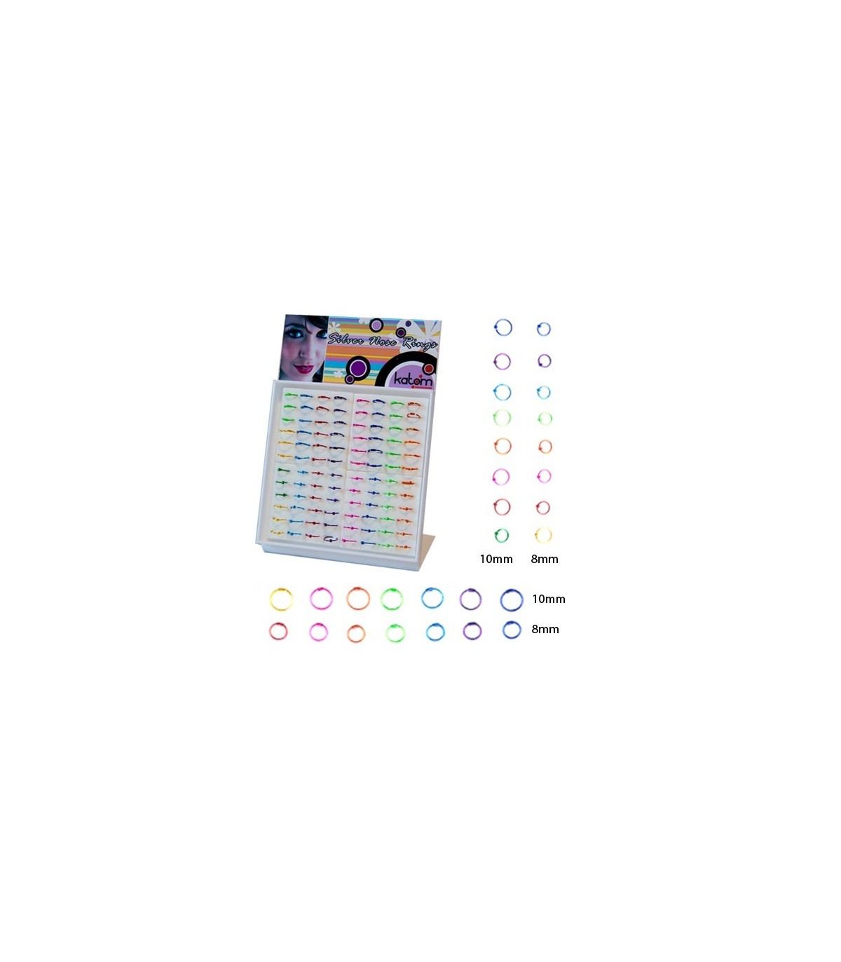Présentoir de cerceaux en argent de couleur noire de diamètre 10, 12, 14, 16, 18, 20 ,25 et 30mm.
