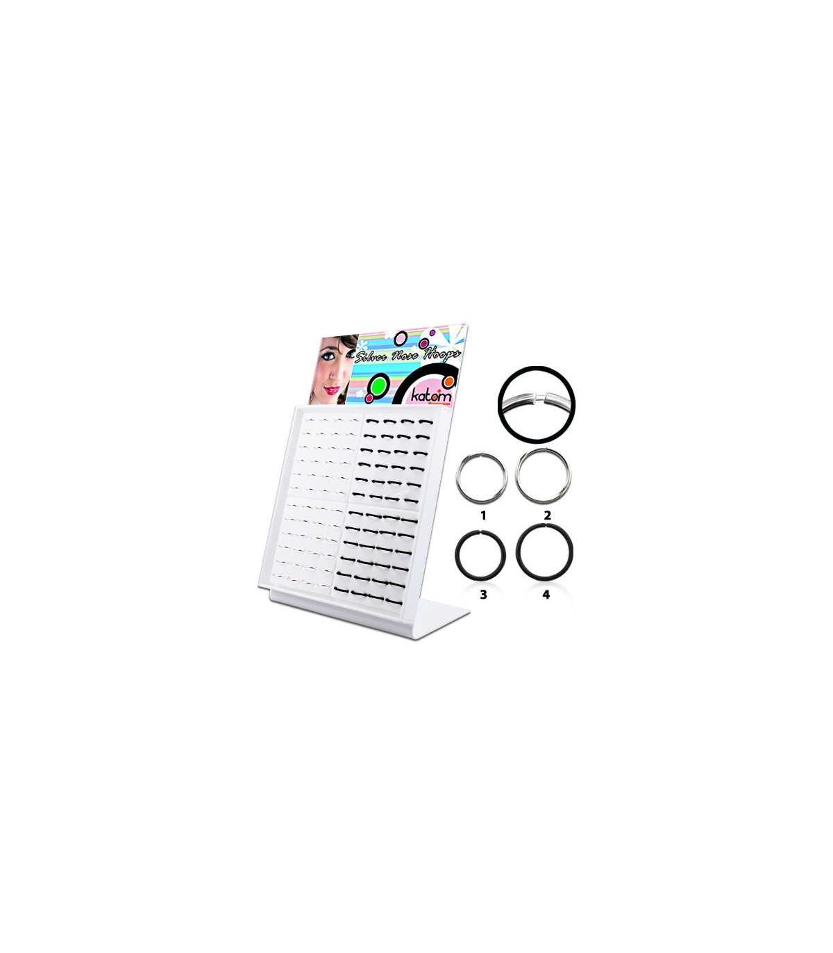 Présentoir de cerceaux pour le nez en argent, qui servent aussi comme cartilage cuff