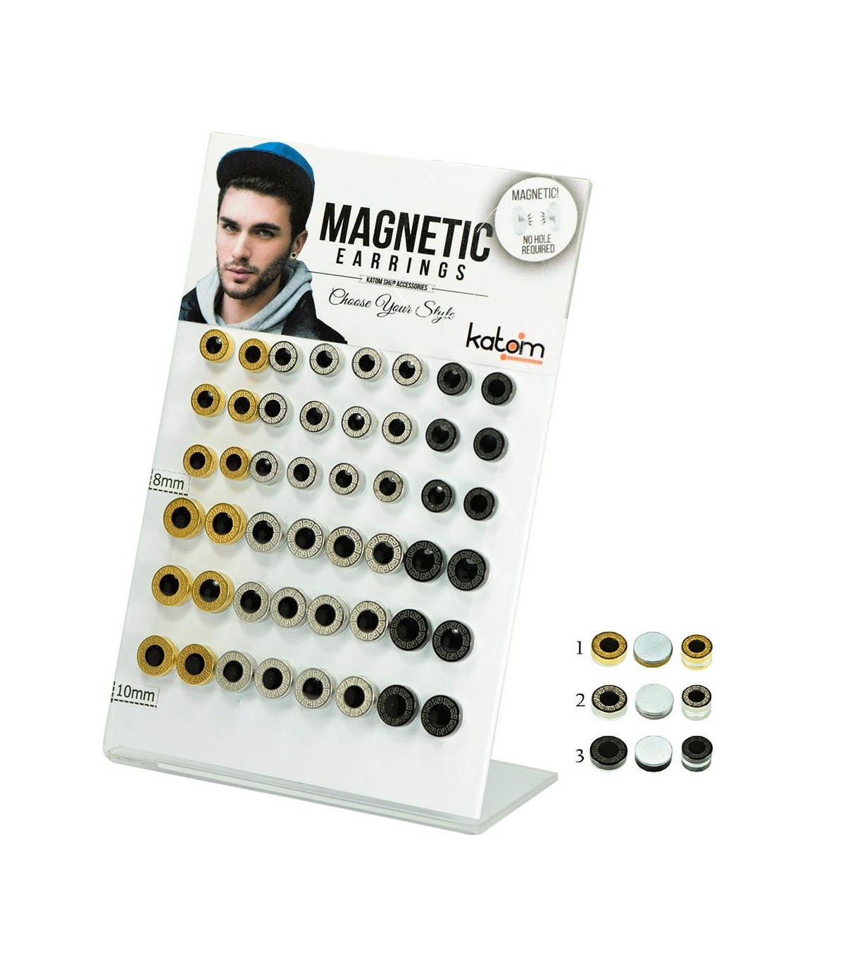Exposant de 18 pièces de fausse expansion magnétique de l'acier. Aimant des 2 côtés de l'oreille. Pour garçon et fille. (Nombre de pièces : 18)