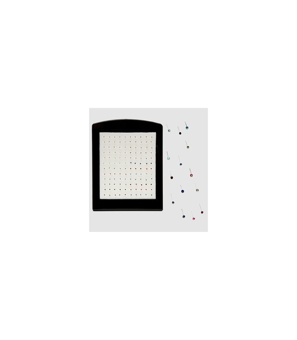 Présentoir de piercing de nez au zircone en 10 couleurs différentes dont la taille est de 1,50 mm.