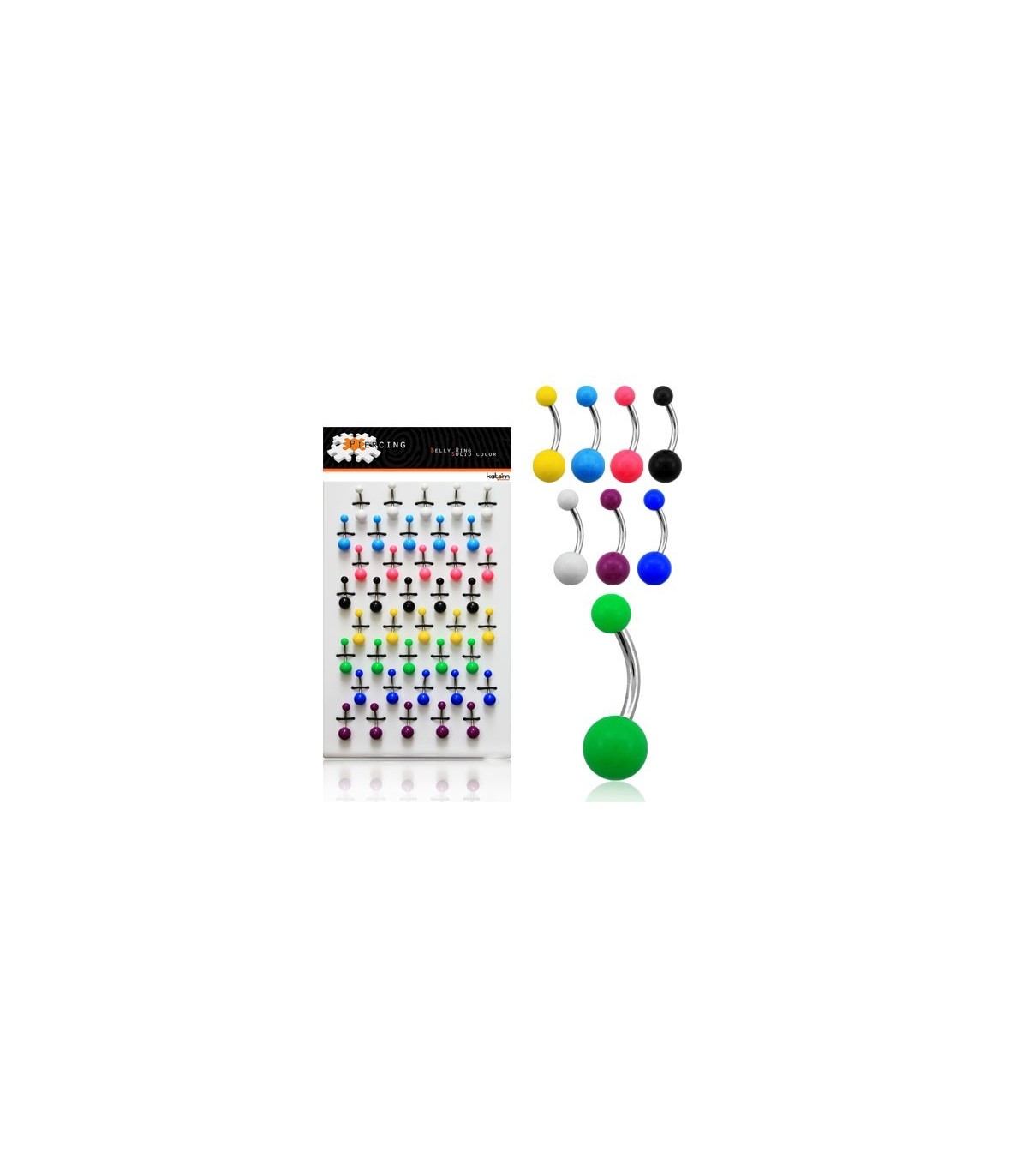 Exposant piercings nombril avec boule en couleurs et tons variés