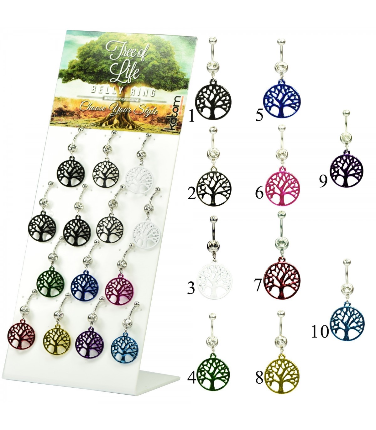 Nombril affichage d'acier. Dessin d'arbre de vie, bar 1, 60mm. . 8 modèles