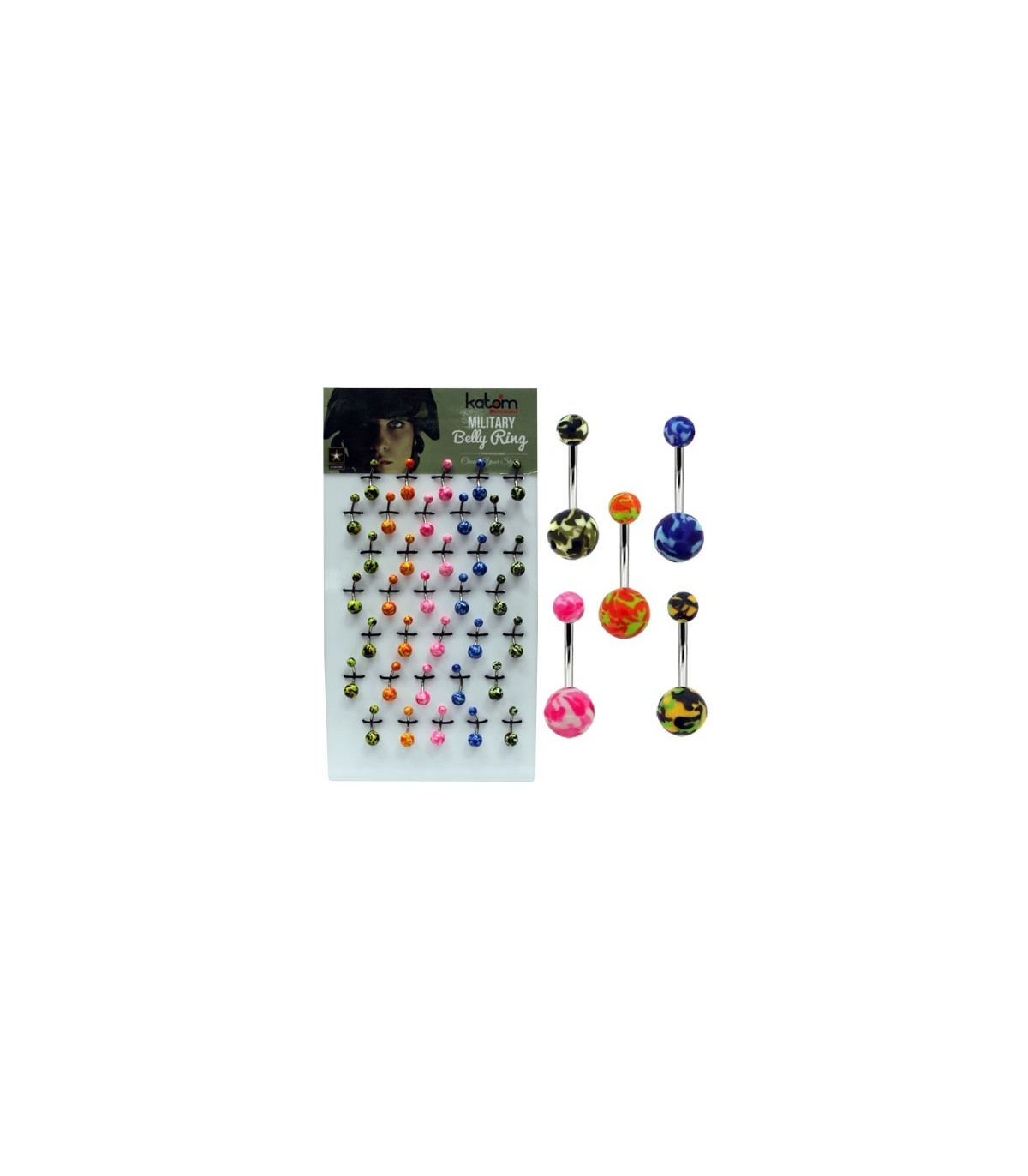 Exposant piercings nombril avec boule en couleurs et tons variés
