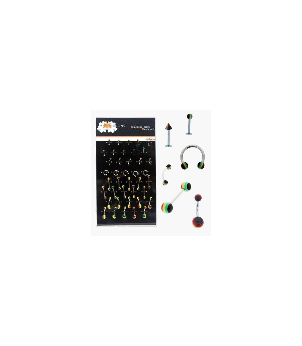 Exposant 72 piercing en acier inox 316l avec beaucoup de modèles variés tous les modèles sont nombreux cristaux .expositor de don qui permet et facilite la vente dans la boutique. (Nombre de pièces : 72)