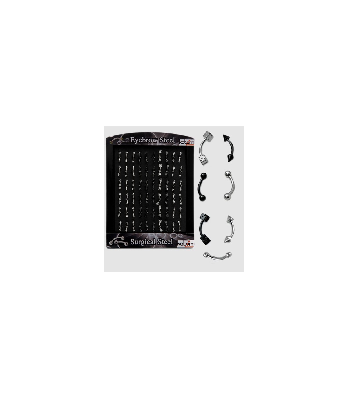 Présentoir de mix piercing basique, couleurs acier et noir, pour la lèvre, le nombril, le sourcil, la langue, le setpum, l´helix et le tragus.