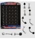 Présentoir de mix piercing basique, couleurs acier et noir, pour la lèvre, le nombril, le sourcil, la langue, le setpum, l´helix et le tragus.