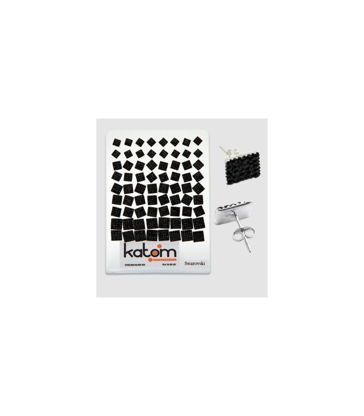 Exposant boucles d'oreilles en argent avec crystal noir serti en forme ronde ou carrée. Différentes tailles. 3, ,4, ,5, ,6, 7, 8, 9 mm72 unités par exposant.