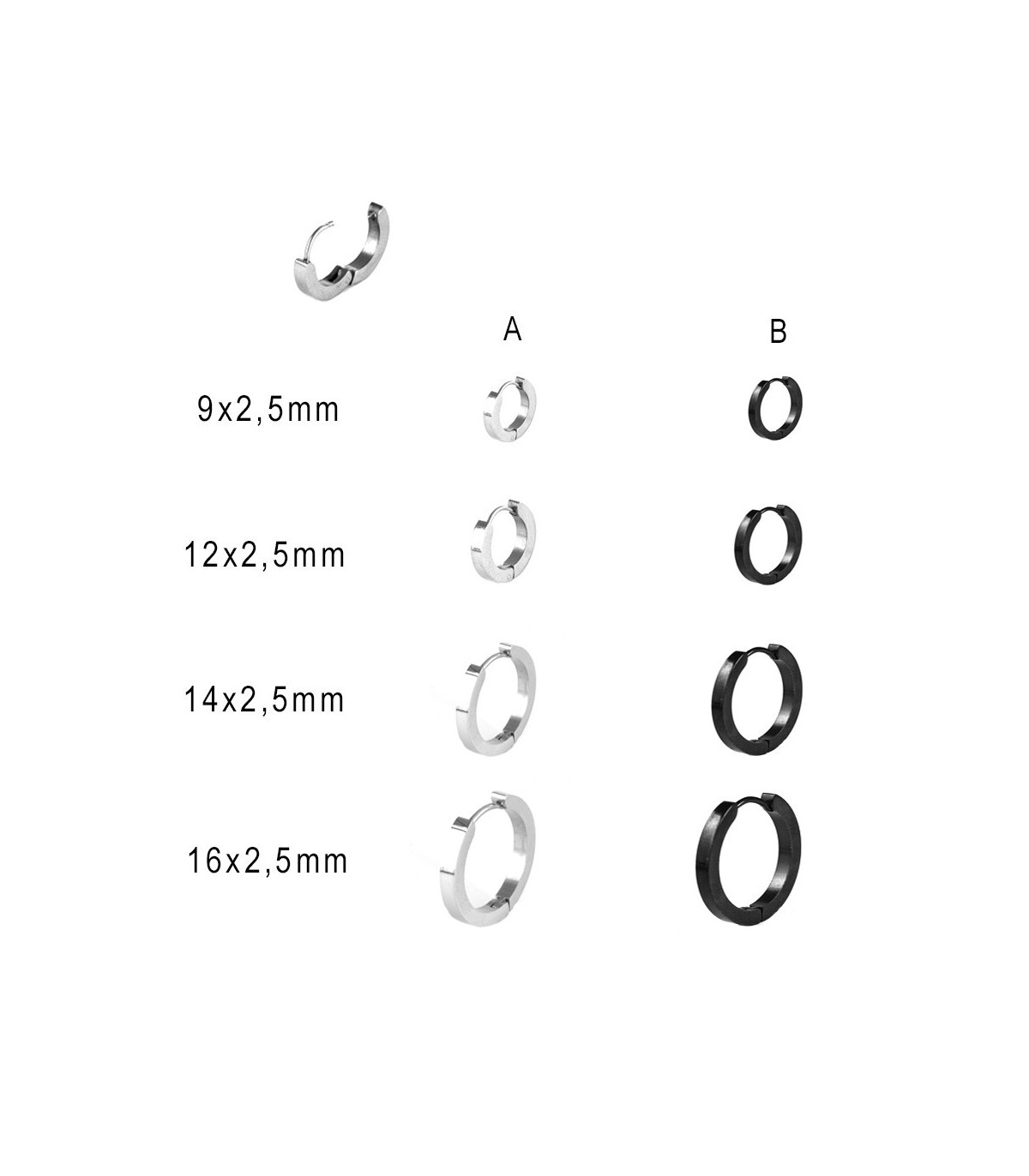 2,5 mm width square steel hoop, color steel or black, 4 sizes: 9, 12, 14 and 16 mm.
