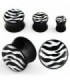 Acrylic Ear plug . Edge design white and black. Flesh tunnel. Threaded.