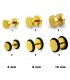 Falsa dilatación dorada en 3 medidas. La parte delantera en tres posibles tamaños 6, 8, 10mm y trasera única de 6mm con goma negra.