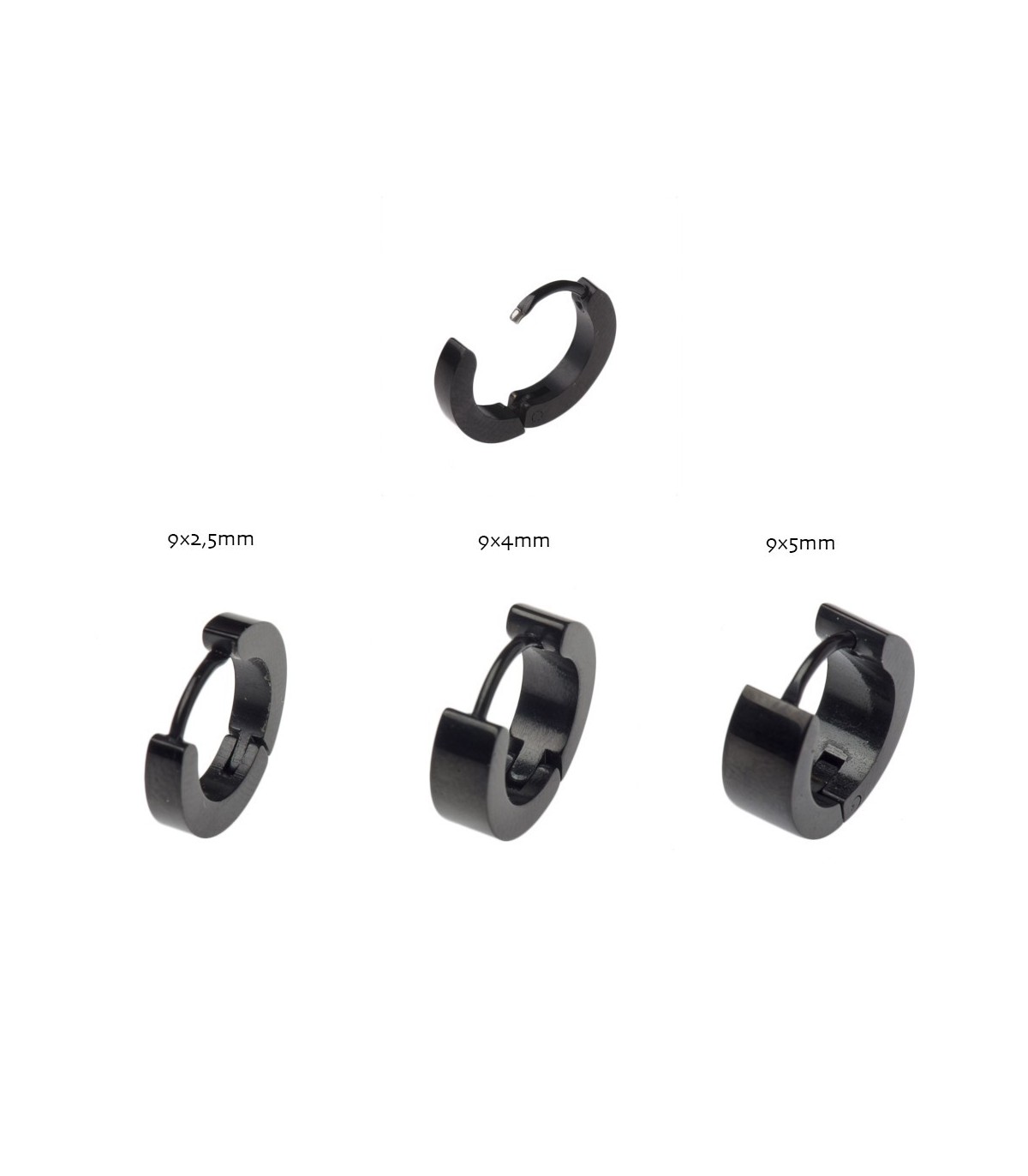Aro de acero negro, de 9 mm de diámetro, en tres anchos: 2.5, 4 y 5 mm.